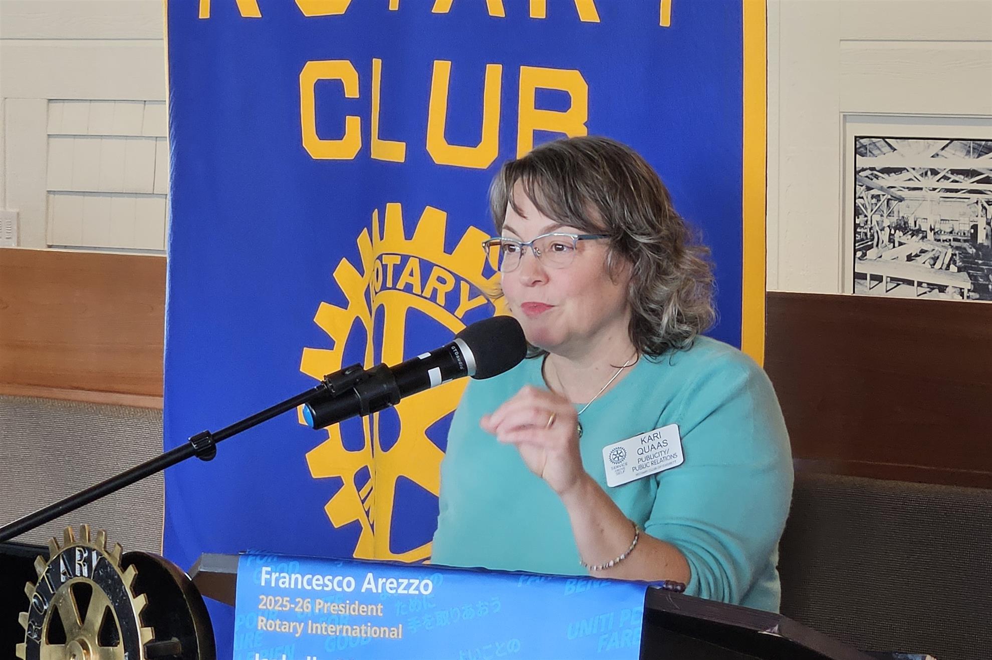 Kari Quaas delivered the Thought of the Day. Gratitude for Veteran’s Day. She listed the names of Everett Rotarians who have served. Many names were mentioned – Ralph Quaas, Marc Baker, Glen Bachman, Greg Lineberry, Bob Beil, Henry Newton, and many more (reporter did not get everyone’s name). Grateful for the people who have served our country. Thank you!
