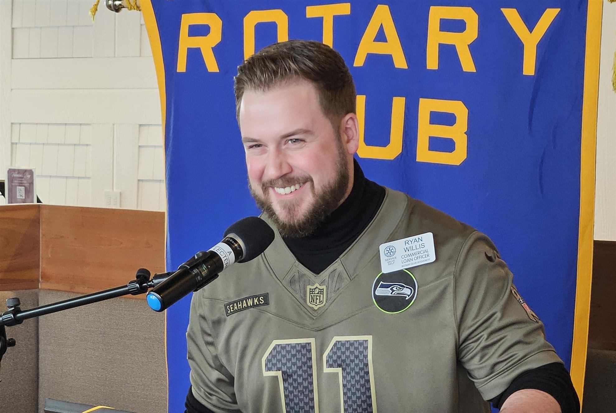 Ryan Willis started the 230th meeting of the year and the 5,630th meeting of the Rotary Club of Everett with the Pledge of Allegiance.