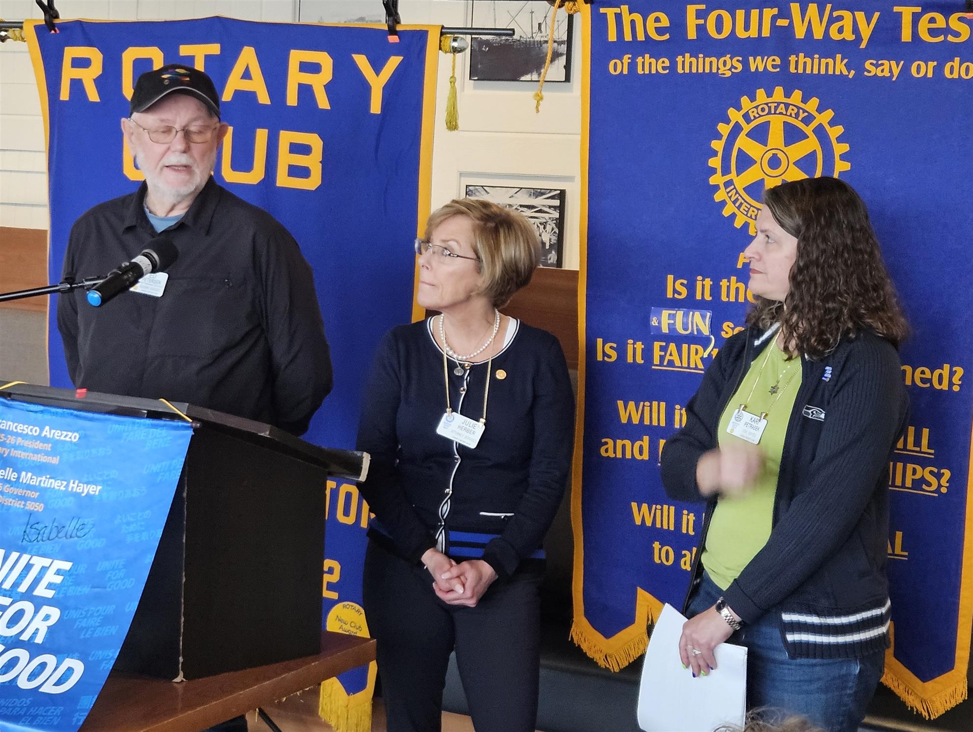 Ed Peterson, Kari Petrasek and Julie Herber presented an update on the World Community Service Committee and their recent trip to the Dominican Republic. Kari spoke about the 11-year history of service with Dajabon Rotary and the Rotary Club of Everett. To date there have been twenty-three trips to collaborate with the Dajabon Rotary Club. Thirty-seven individuals have participated in the five major projects undertaken in the partnership. The projects are focused on four areas. Entrepreneurship with the greenhouse gardens, literacy creating a culture of reading, water projects supplying clean water to the towns during the dry season, and education using school gardens as learning laboratories as well as supplement their food supply.